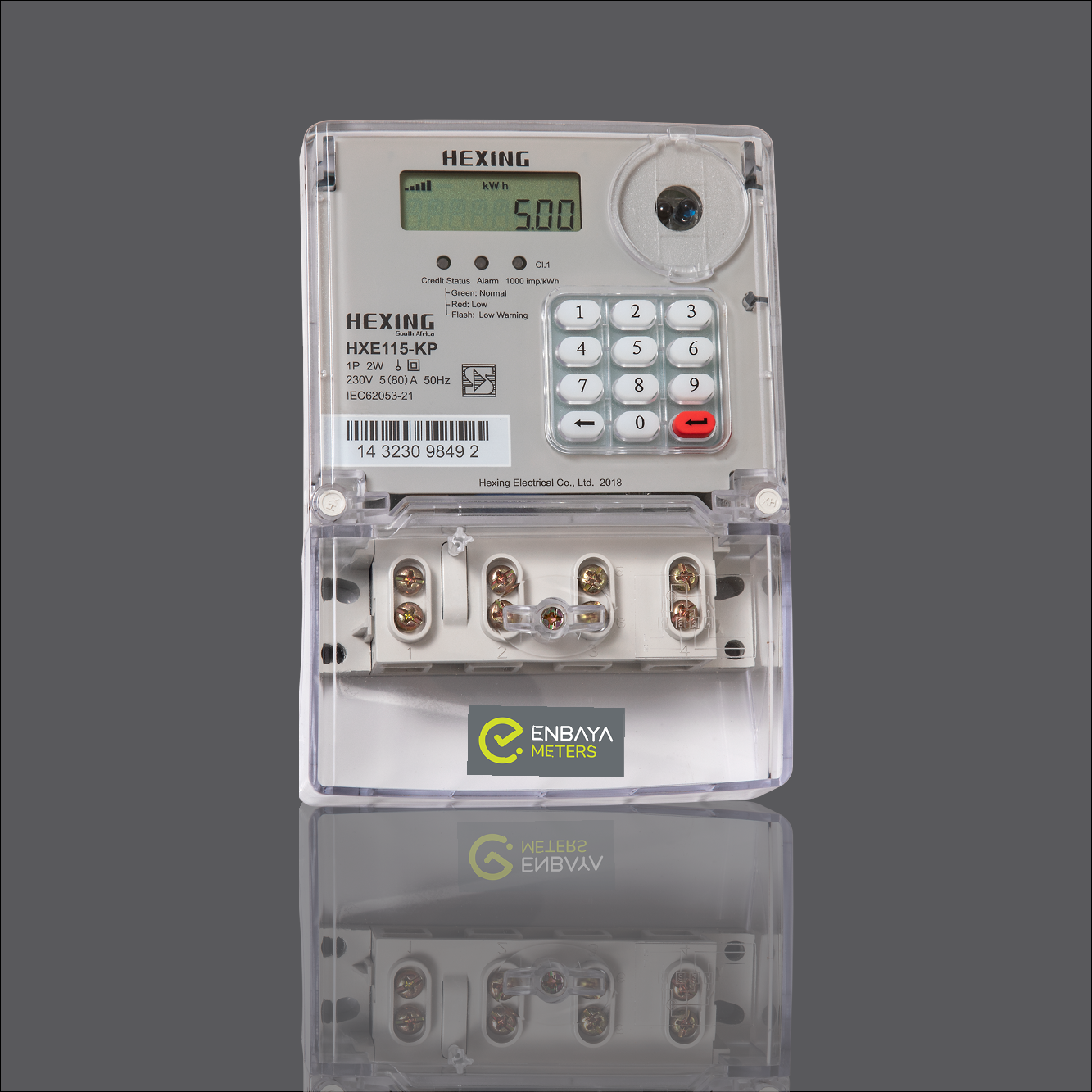 The Hexing HXE115 is a high quality, low cost single phase prepaid meter. It contains all the critical metering, token decryption, relay disconnection and reverse energy detection functionality. This meter is designed to wall mount alongside a distribution board as it has an integrated keypad.Â